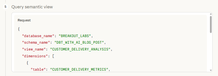 Claude starts querying the semantic view: